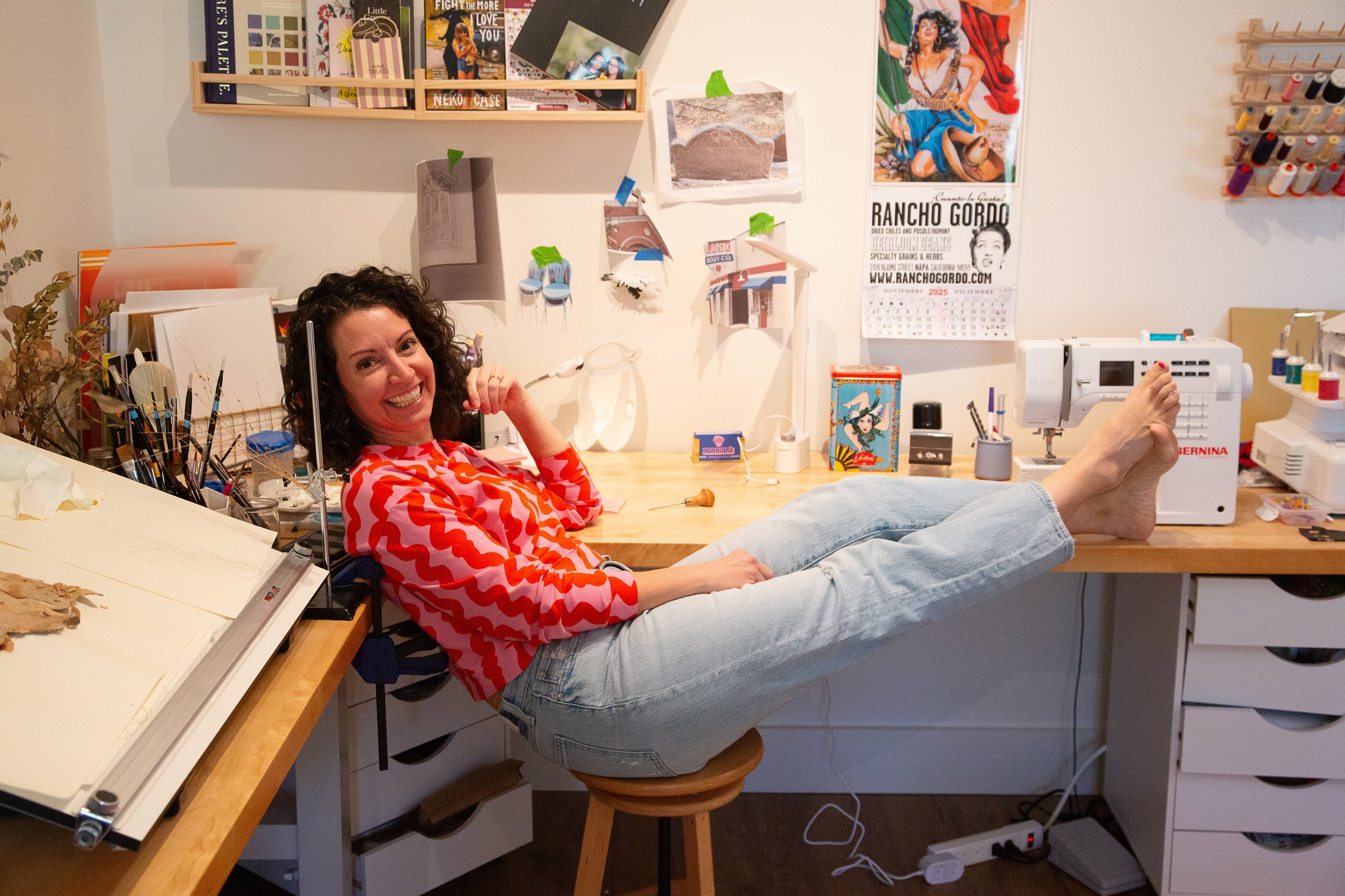 All of the products and art I make are meant to spark joy and create a little silliness in your life. I have a lot of jokes here at Nonnina’s, but everyone is always in on them! Whether you are here for stickers, bookmarks, goods or fine art, I hope you find something you love or love to gift!